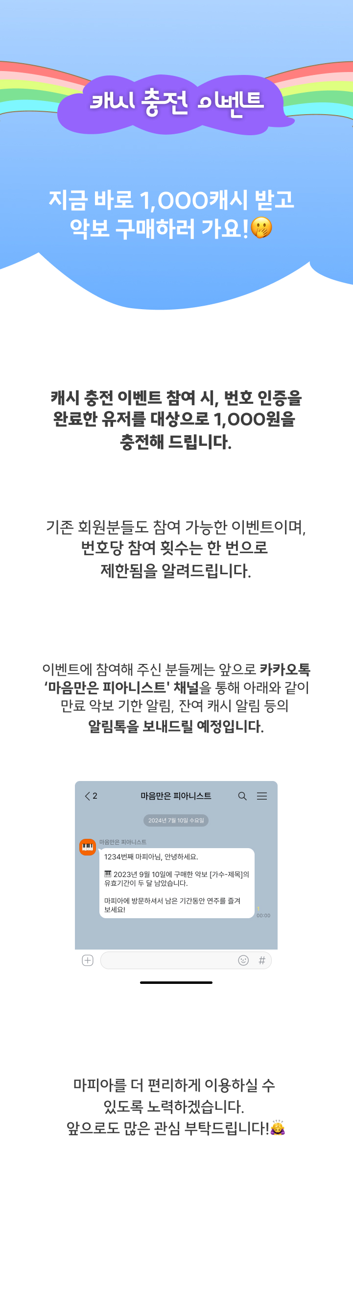 [캐시 충전 이벤트] 번호 인증 및 알림톡 관련 안내