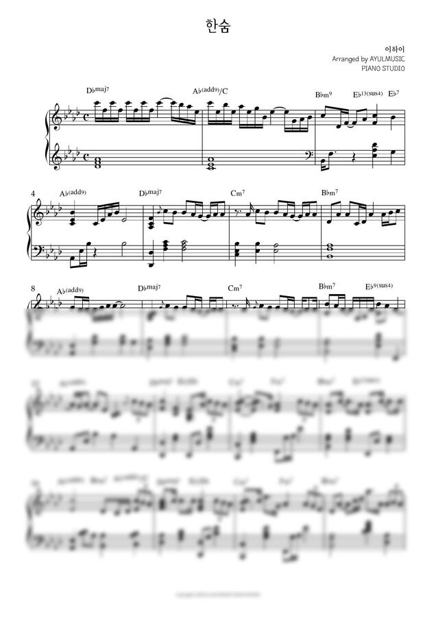이하이 - 한숨 (원Key, 완곡/ 코드 포함)