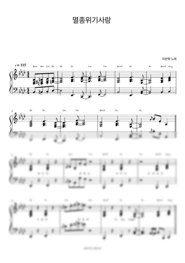이찬혁 - 멸종위기사랑 피아노 반주 with AR | piano sheet