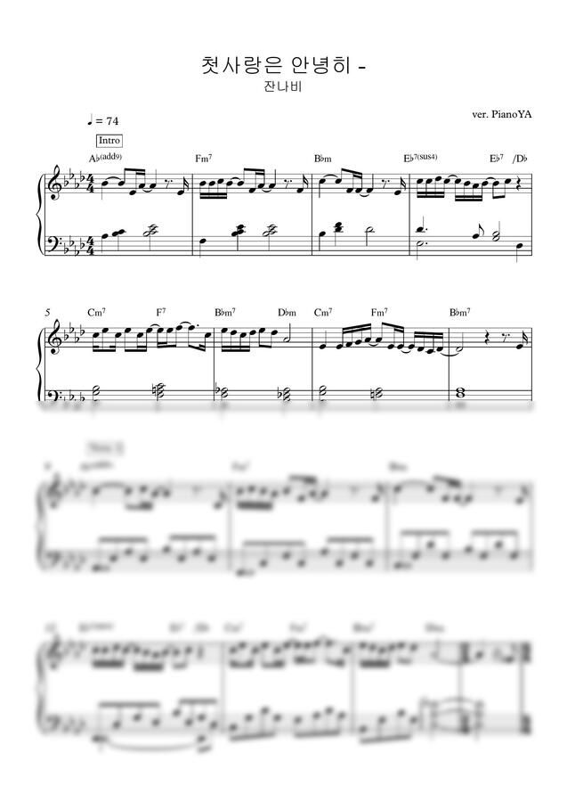 잔나비의 신곡 '첫사랑은 안녕히-' 악보를 제작해보았습니다.