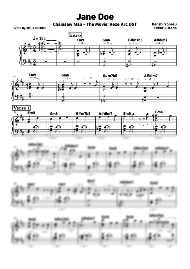 극장판 체인소맨 레제편 OST - JANE DOE (원곡 악보)