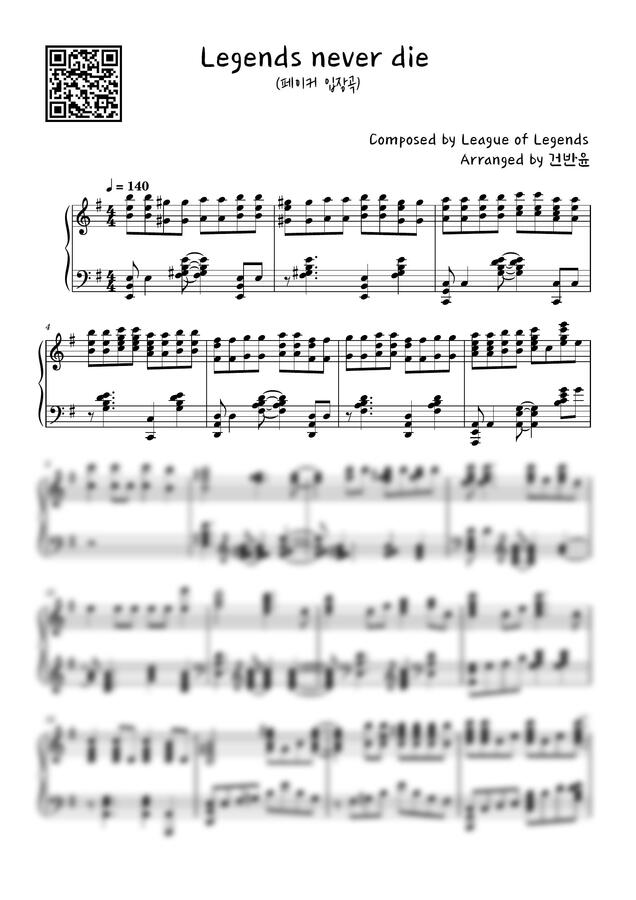 [페이커 입장곡] League of Legends - Legends Never Die 피아노 커버 + 악보 입니다.