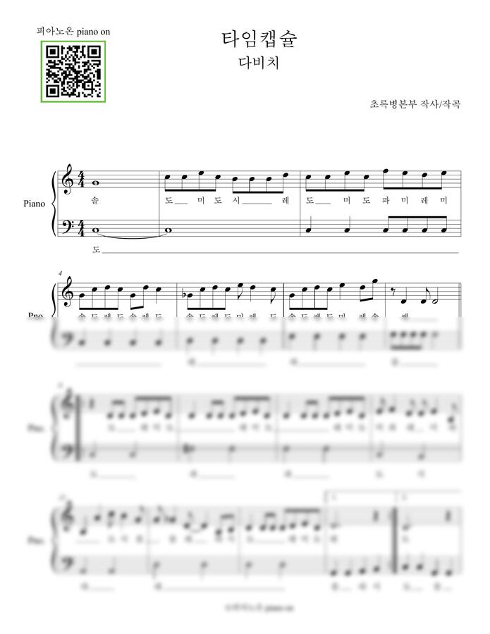 다비치 - 타임캡슐ㅣ쉬운 계이름 피아노 악보