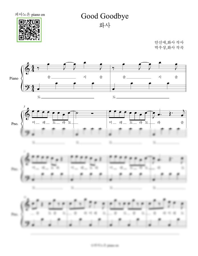 화사 - Good Goodbyeㅣ쉬운 계이름 피아노 악보