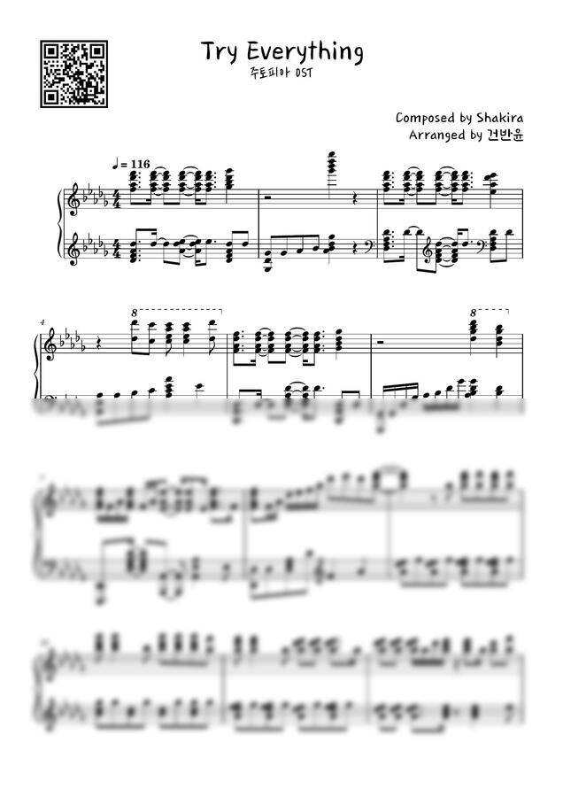 [주토피아 OST] Shakira - Try Everything 피아노 커버 + 악보 입니다.