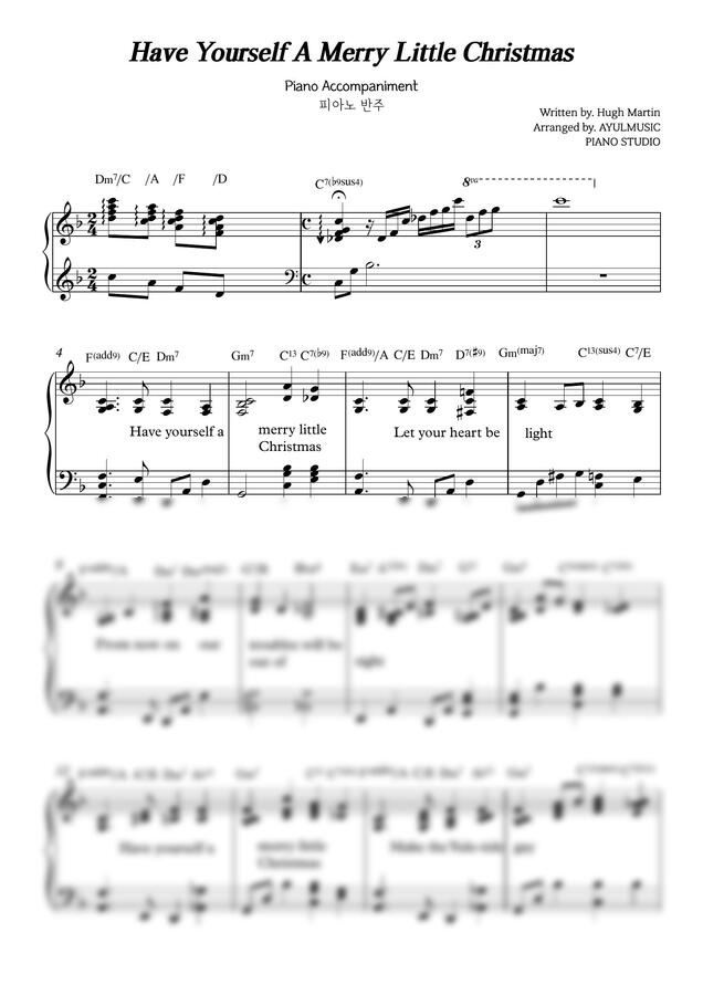 Have Yourself A Merry Little Christmas 피아노 반주 악보 (F Key/ 코드,가사 포함)