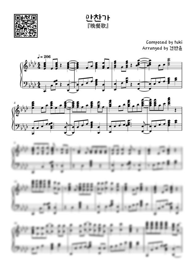tuki - 만찬가(『晩餐歌』) 피아노 커버 + 악보 입니다.