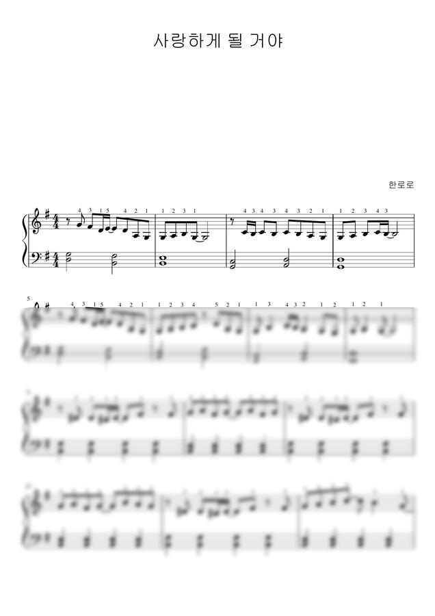 한로로 - 사랑하게 될 거야 쉬운피아노 악보