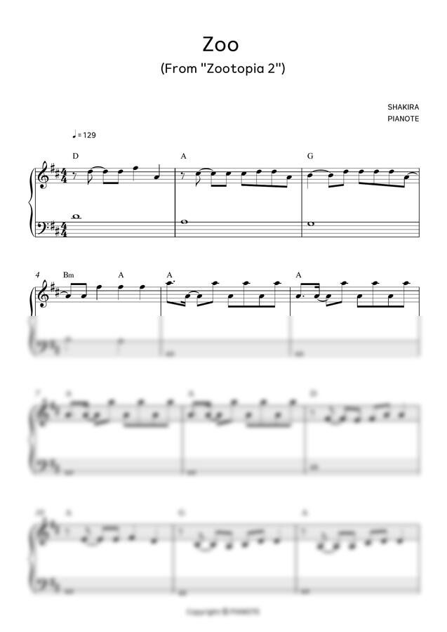 Shakira - Zoo[주토피아 2 OST] (쉬운 악보) by 피아노트PIANOTE