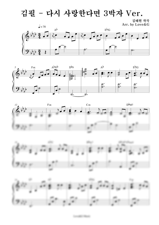 김필 - 다시 사랑한다면 피아노 3박자 편곡 by Love&G