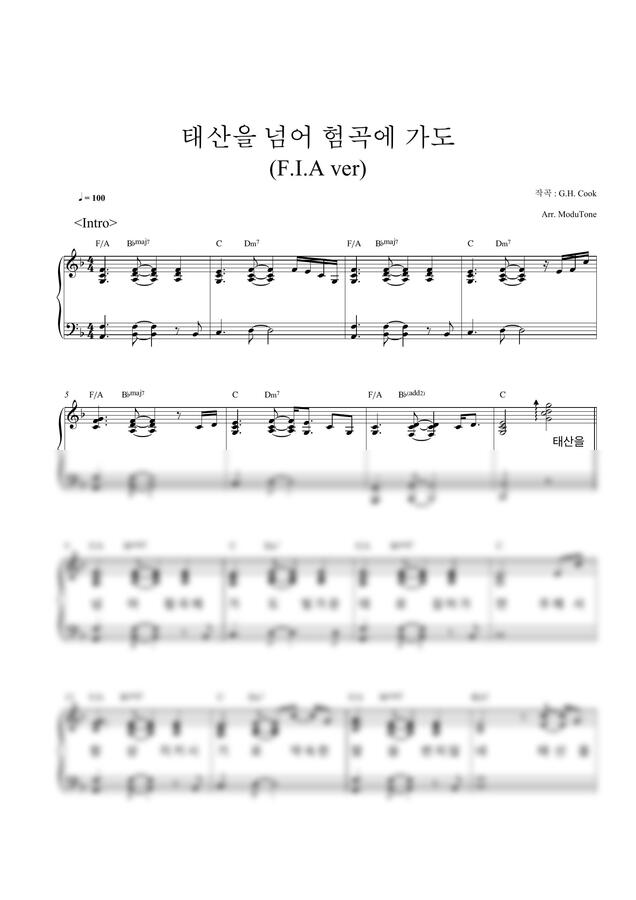G.H.Cook - 태산을 넘어 험곡에 가도 (F.I.A 워십 ver) l 피아노반주