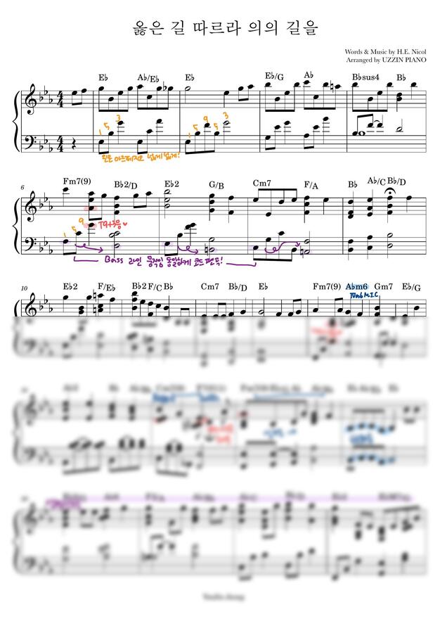 [옳은 길 따르라 의의 길을] 편곡 | Jazz Piano | 양손악보 | 분석 | 리하모니/보이싱 Tip | 찬송가 516장 | 찬송가 편곡