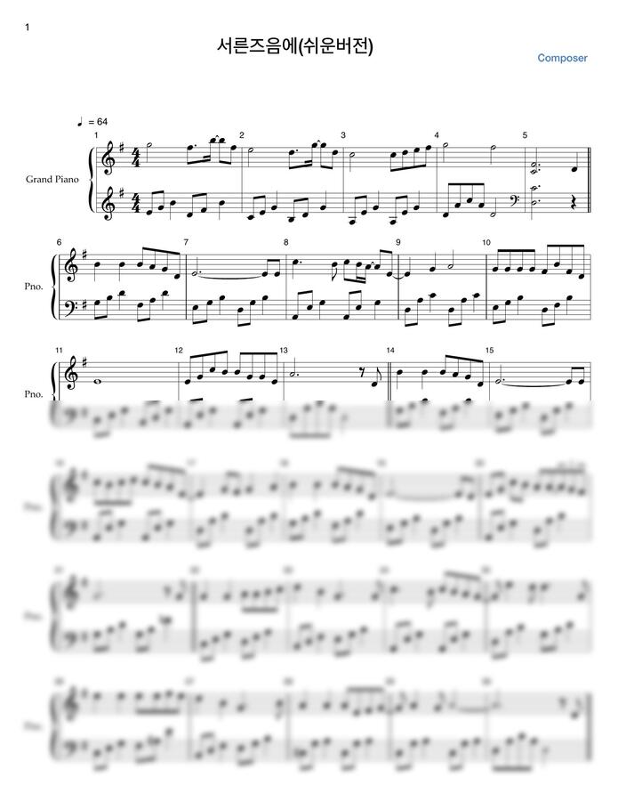 김광석 작곡 서른즈음에를 임영웅이 리메이크 한 버전을 쉽게 연주하였습니다. 바이엘 후반부 실력이면 연주할 수 있어요.