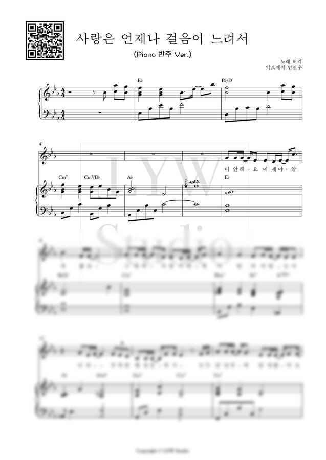 허각 - 사랑은 언제나 걸음이 느려서 (반주 악보)