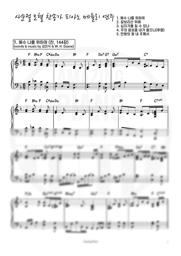 [사순절(고난주간) 보혈 찬양 피아노 연주&악보 한눈에 보기]