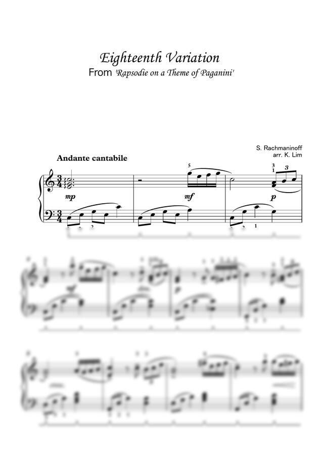 라흐마니노프의 파가니니 주제에 의한 광시곡 중 18번 변주곡을 쉬운 솔로버전으로 편곡해봤습니다!