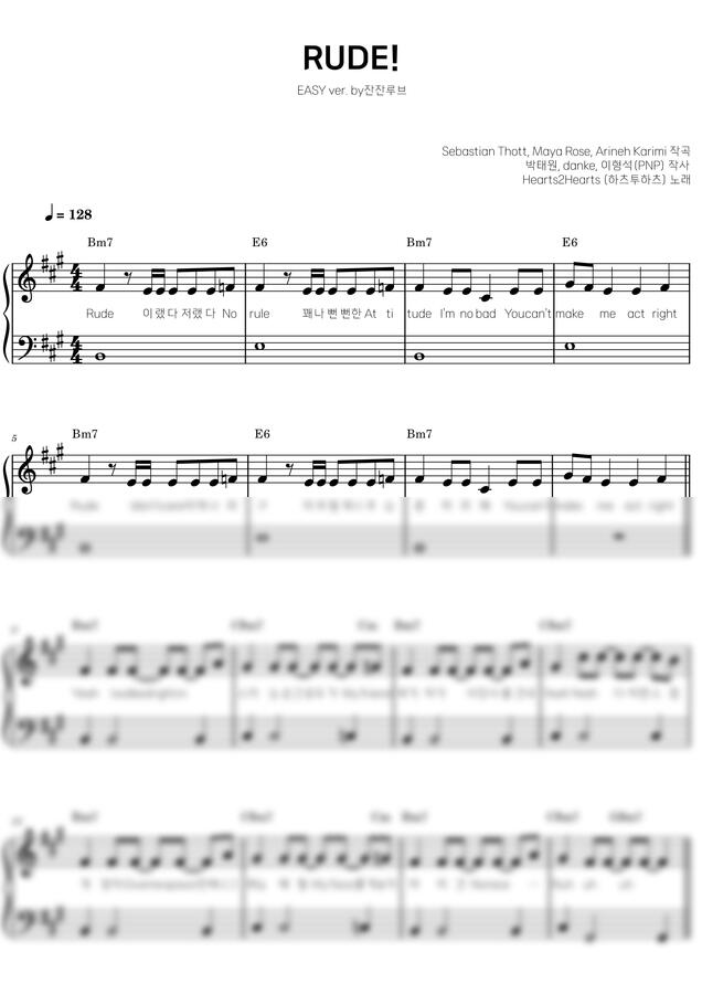 하츠투하츠 - RUDE!(A)[EASY] (계이름,코드,가사)