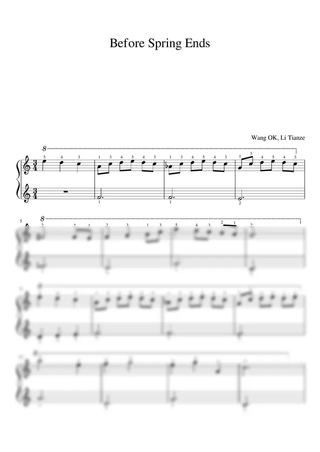릴스 인기곡 Wang OK - Before Spring Ends (양손번호) (매우쉬움.바이엘)