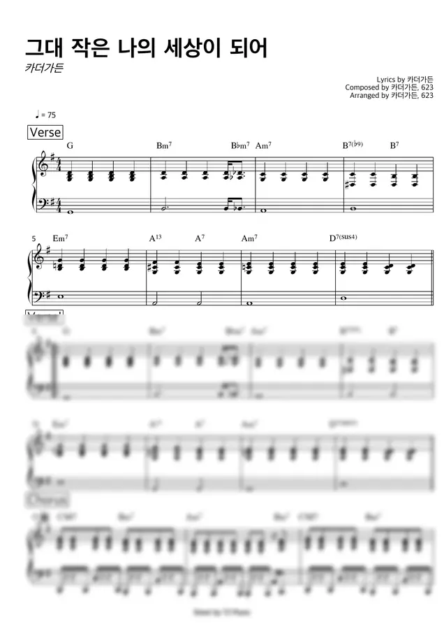 카더가든 - 그대 나의 작은 세상이 되어 (2단악보, 밴드합주)
