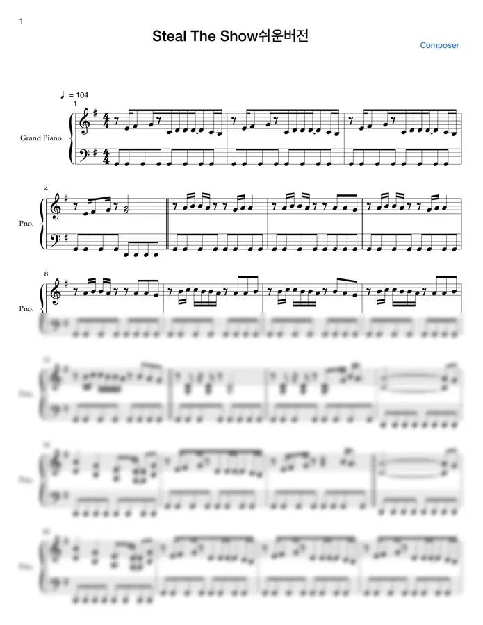 엘리맨탈 Ost Steal The Show의 쉬운버전입니다. 바이엘 후반 수준이면 능히 연주할 수 있어요.