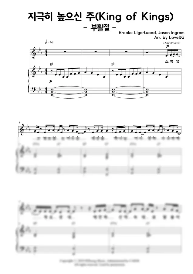 Hillsong Worship - 지극히 높으신 주(King of Kings)(부활절) (4부 합창 SATB)