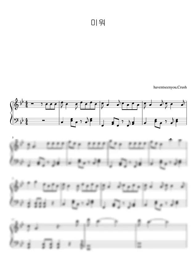 릴스 챌린지 인기곡 crush - 미워 쉬운피아노 악보
