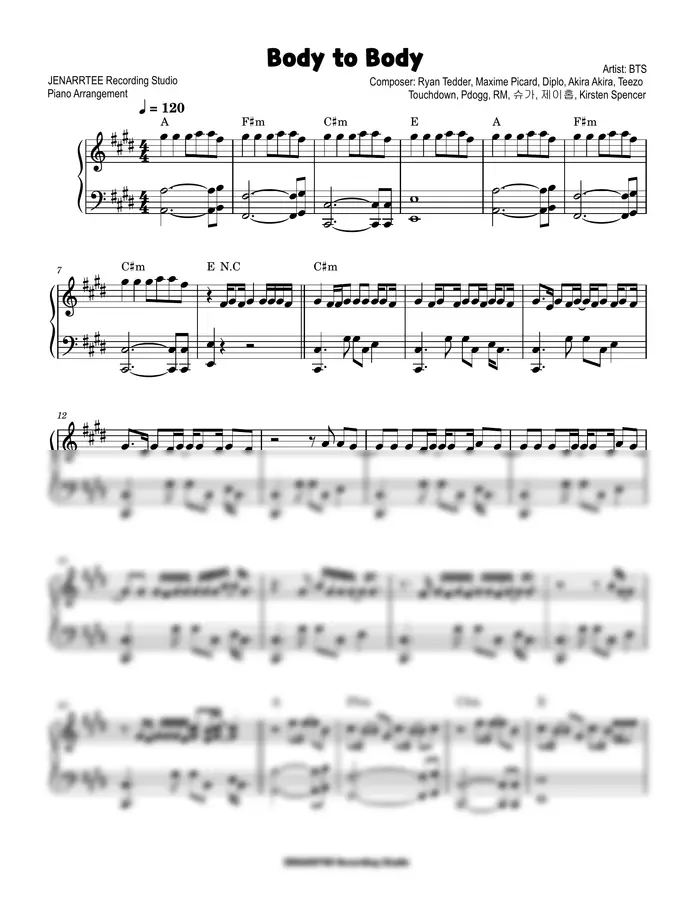 방탄소년단 'Body to Body' 피아노 커버