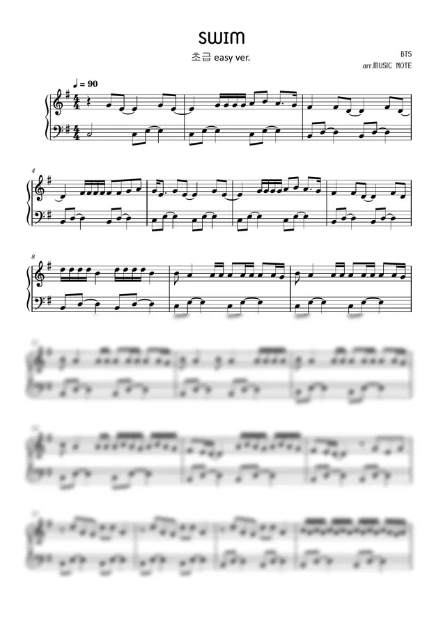 방탄소년단 (BTS) - SWIM (초급,계이름첨부) by 뮤직노트