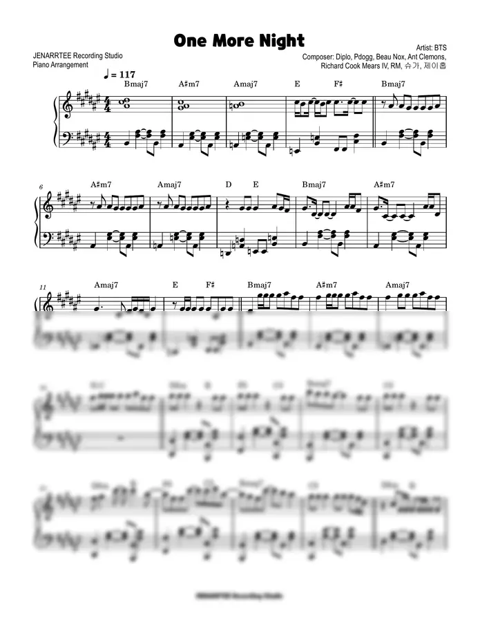 방탄소년단 'One More Night' 피아노 커버