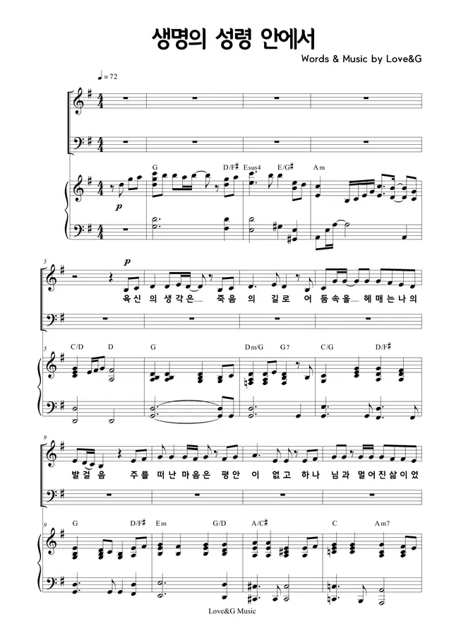 Love&G - 생명의 성령안에서 (4부 합창 SATB) 입니다.