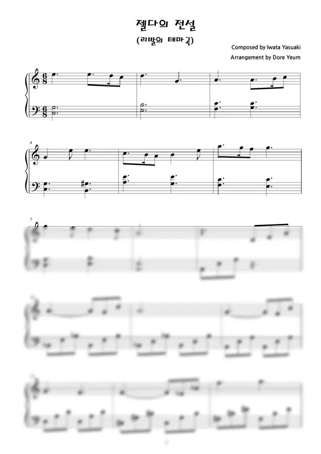 Iwata Yasuaki - 젤다의 전설 중 리발의 테마 (원곡감성 쉬운악보) by 도레예음
