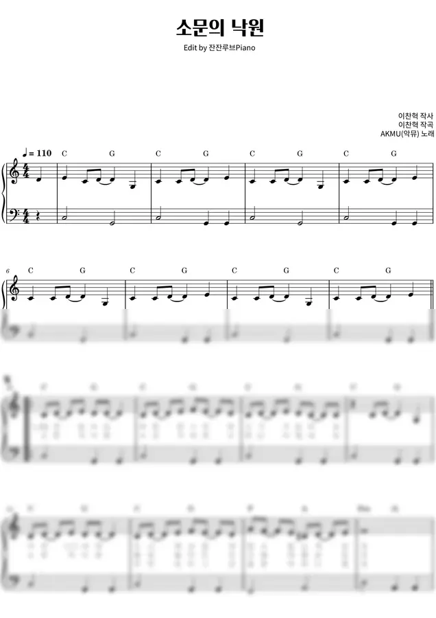 AKMU(악뮤) - 소문의 낙원(C-Db) (계이름,코드,가사)