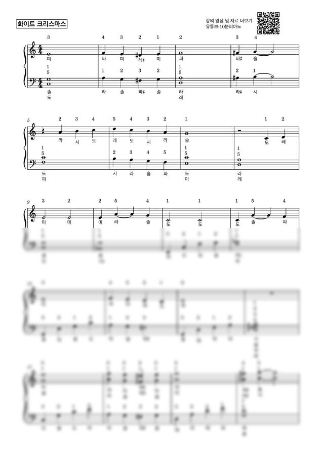 캐롤-화이트크리스마스 쉬운 악보 초보,입문자용 계이름,손가락 번호 포함