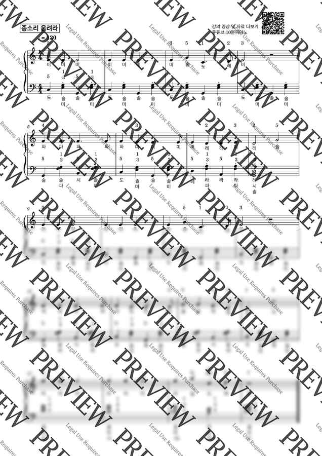 난이도는 바이엘 3–4권 수준으로, 같은 패턴이 반복되어 금방 익히실 수 있어요.