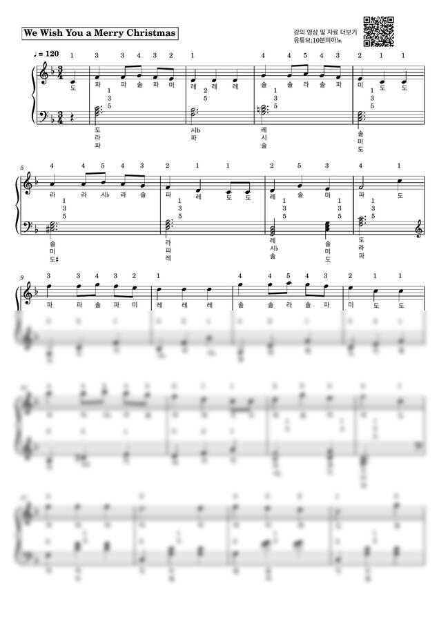 We wish you a Merry Christmas 쉬운 악보 초보,입문자용 계이름,손가락 번호 포함
