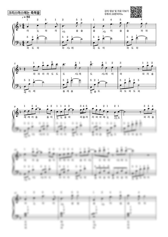 크리스마스에는 축복을 쉬운 악보 초보,입문자용 계이름,손가락 번호 포함