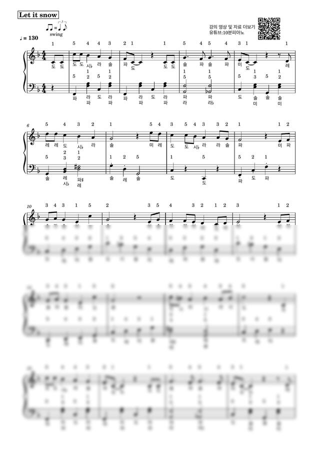렛잇스노우(Let it snow) 쉬운 악보 초보,입문자용 계이름,손가락 번호 포함