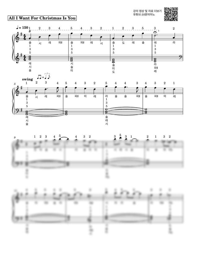 머라이어캐리-All I Want For Christmas Is You 쉬운 악보 초보,입문자용 계이름,손가락 번호 포함