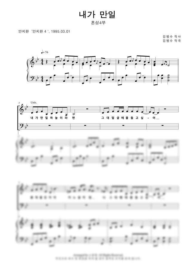 95년3월1일 발매된 안치환의 '내가 만일' 혼성합창 악보입니다.