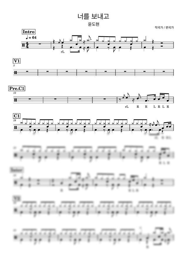 윤도현 - 너를 보내고 (드럼악보/보통) by Drummer KWI