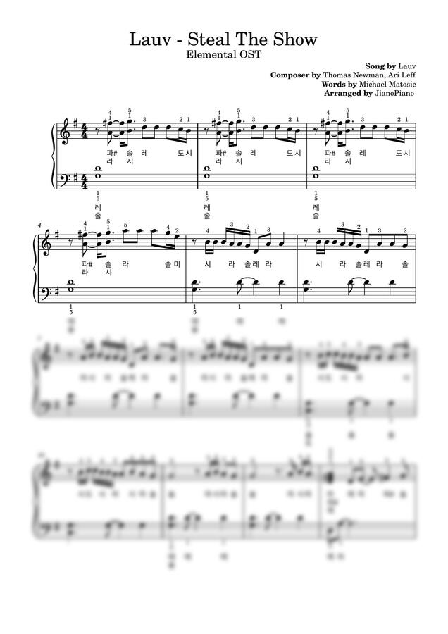 [엘리멘탈OST] Lauv - Steal The Show (계이름, 손가락번호) by 지아노피아노(JianoPiano)