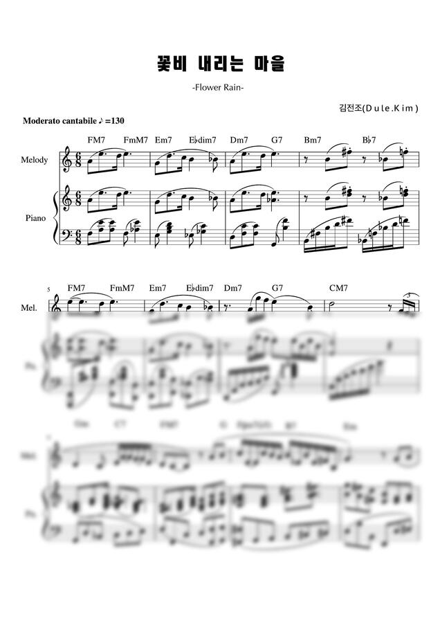 멜로디는 플룻이나 바이올린으로 연주할 수 있으며 이외의 클래식 악기와도 잘 어울립니다.