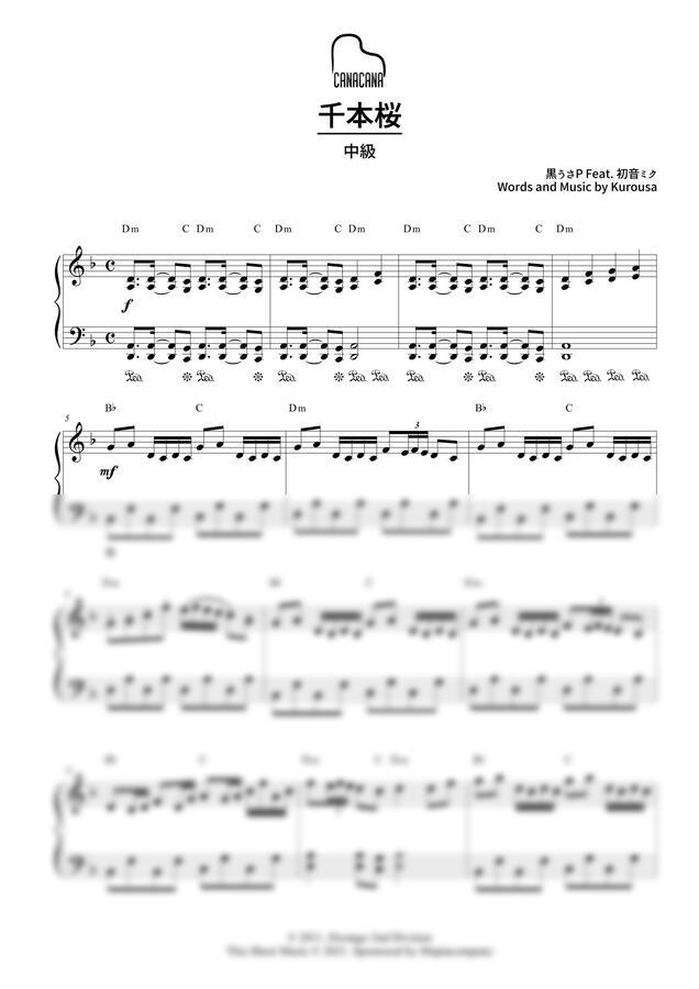 하츠네 미쿠의 "천본앵" 중급 피아노악보입니다:)
