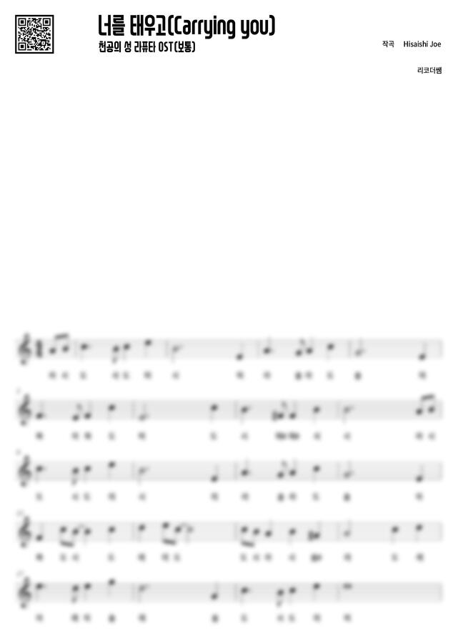 천공의 성 라퓨타 OST - 너를 태우고 (보통, 계이름) by 리코더쌤
