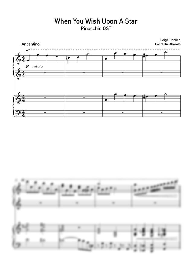 많이들 물어봐주신 'When You Wish Upon A Star' 의 악보버전을 제작해보았습니다!