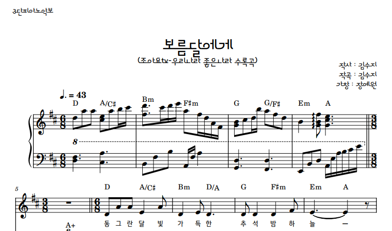 * 위의 악보 파일에는 3단 피아노악보와, 1단 멜로디악보가 수록되어 있으며,
