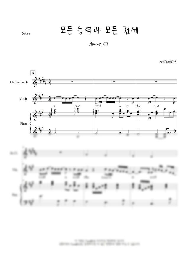 Lenny LeBlanc - 모든 능력과 모든 권세 (Above all) (Pf, Cl, Vn) by ToneWith 톤위드0