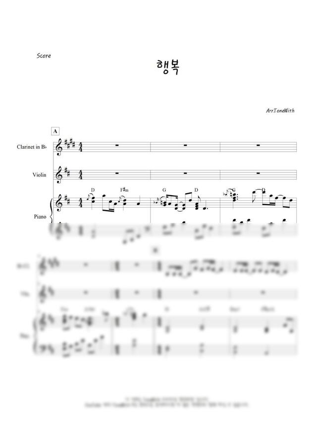 +)악보는 스코어와 피아노 클라리넷 바이올린 파트보로 구성되어 있습니다.