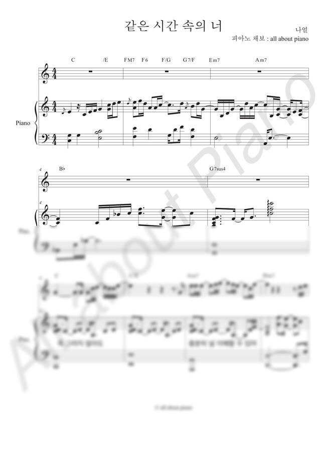 나얼 - 같은 시간 속의 너 (피아노 반주) by all about piano