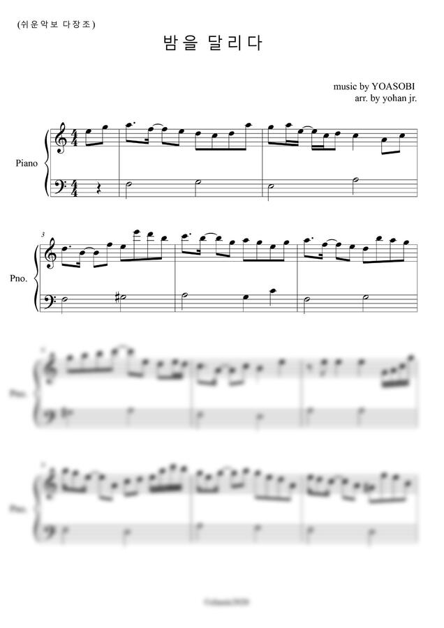 YOASOBI - 밤을 달리다 (다장조 쉬운악보) by classic2020 1p 미리보기